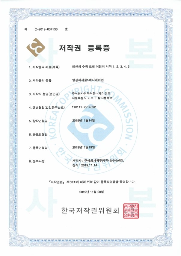 [한국/저작권] 리안의 수학 모험 여정의 시작 1,2,3,4,5 페이지 정보 작성자 WeDu 댓글 0건 조회 4,467회 작성일 21-12-31 12:36 본문 2019-11-20 저작권 C-2019-034130 영상저작물>애니메이션 List Previous[한국/저작권] OLL KIDS/MATH 21.12.31 Next[한국/저작권] 리안의 수학 모험 애니메이션 OST 19.11.25